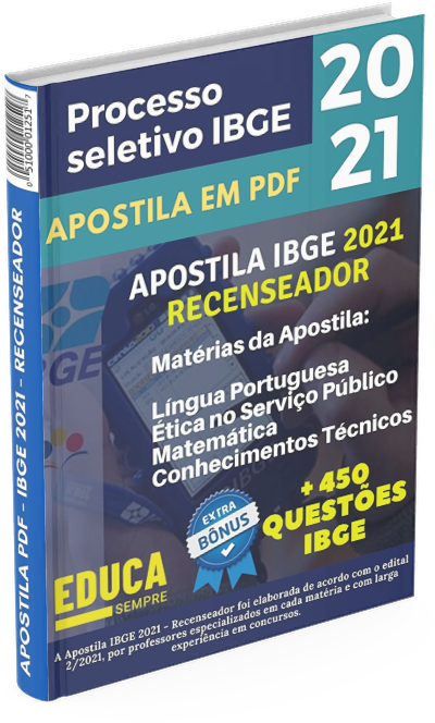 A Educa Sempre traz até você o melhor material de estudo atualizado. Esse material foi produzido para processo seletivo da vaga de Recenseador todo material esta em conformidade ao edital 2/2021 processo seletivo. Para viabilizar aquisição do conteúdo resolvemos produzir a apostila no arquivo em PDF ficando assim mais pratico para seu estudo nos dispositivos digitais como computadores celulares tabletes e outros. Você recebera somente o arquivo digital no formato PDF.