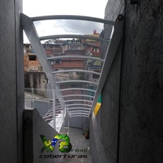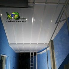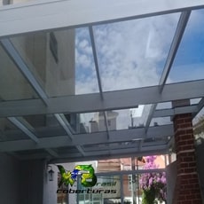 COBERTURA DE POLICARBONATO COMPACTO: semelhante ao vidro temperado ou laminado.