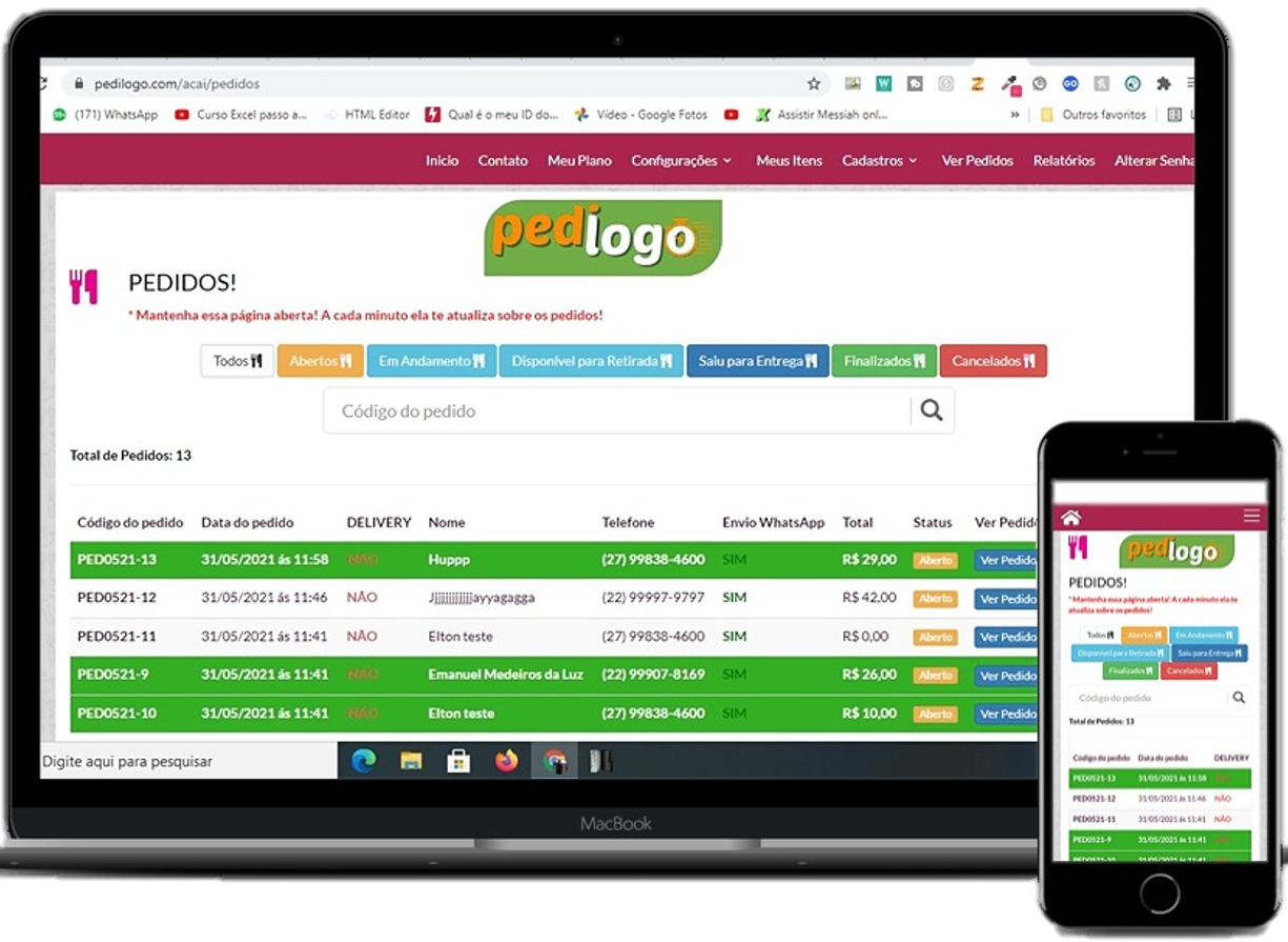 Gerencie todos seus pedidos pelo painel tendo controle dos pedidos tanto pelo computador quanto pelo celular
