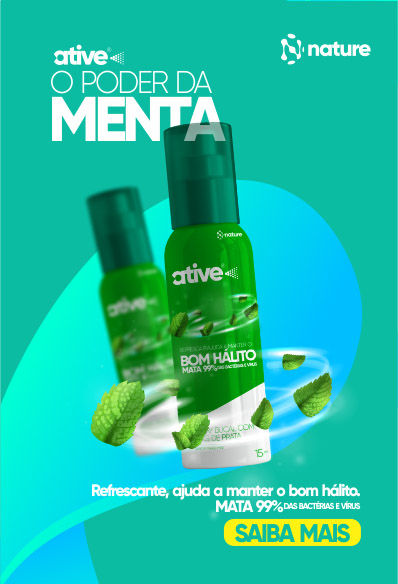 O ATIVE SPRAY no Sabor de menta tem uma ação prolongada numa média de 4 horas. Refresca o hálito de maneira instantânea. Trazendo um bom Hálito e mata 99% das bactérias .Esse spray bucal proporciona uma incrível sensação de limpeza e hálito fresco. Um produto inovador para o seu dia a dia, que foi feito para uma vida mais prazerosa